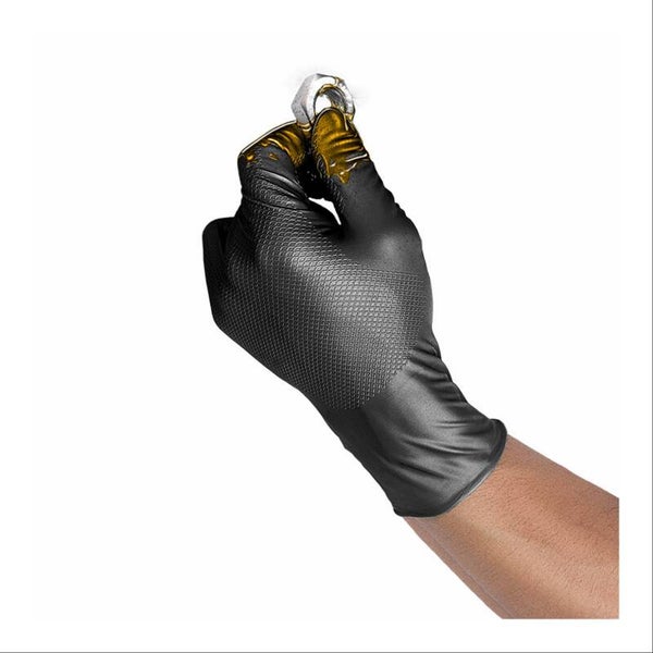 Our grippaz black semi-disposable gloves are made from premium nitrile material with patented fish scale grip for superior handling in wet and dry conditions. These heavy duty 6mil thickness gloves last five time longer than standard nitrile gloves. Ideal for car mechanics, tyre & exhaust fitters and vehicle service technicians.